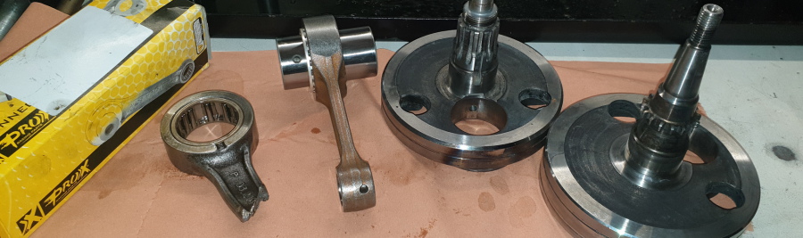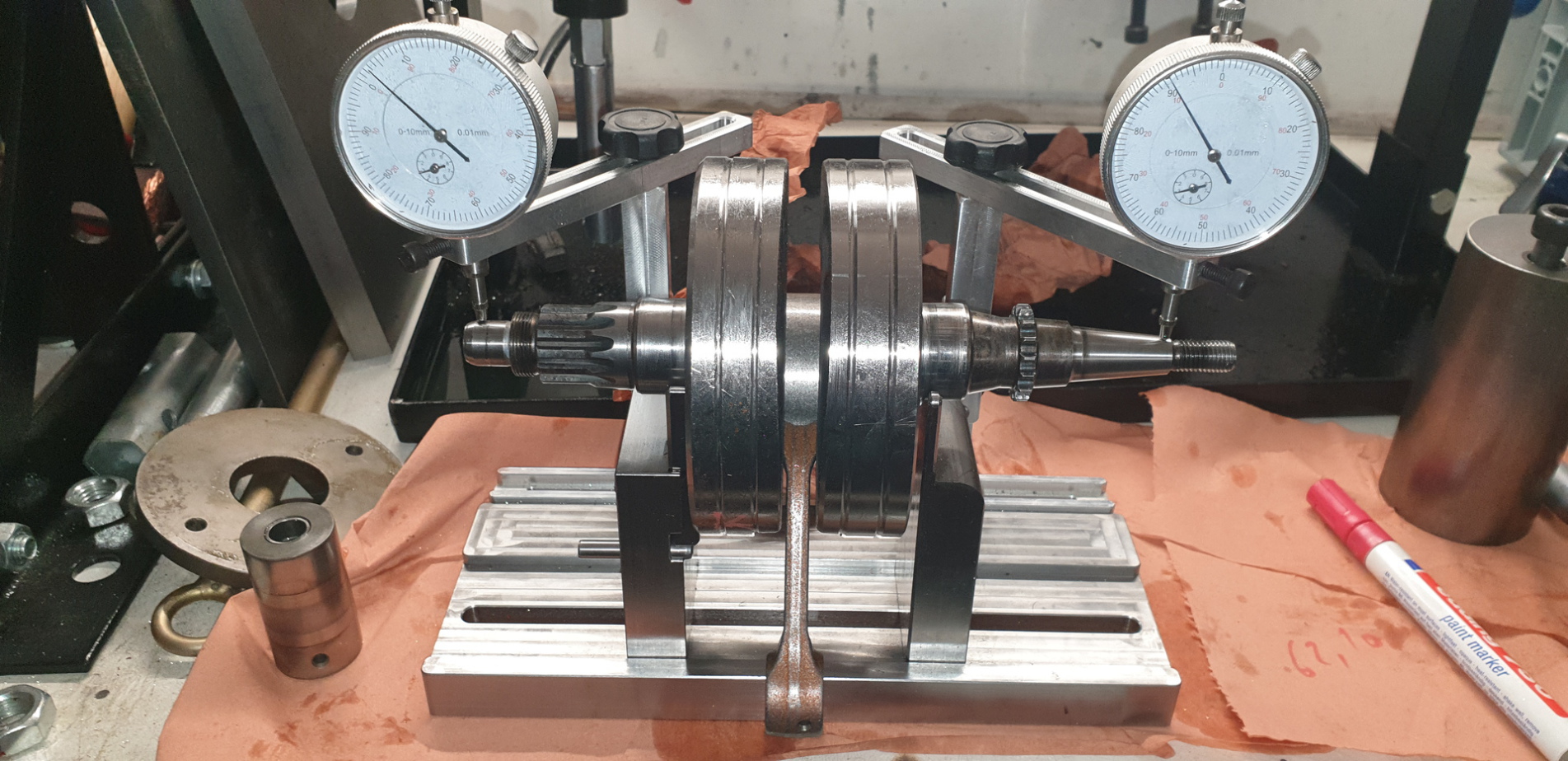 Démontage de l'ancien kit bielle, nettoyage, contrôle, montage du nouveau kit bielle, contrôle des jeux en accord avec les données constructeur, alignement des soies et équilibrage